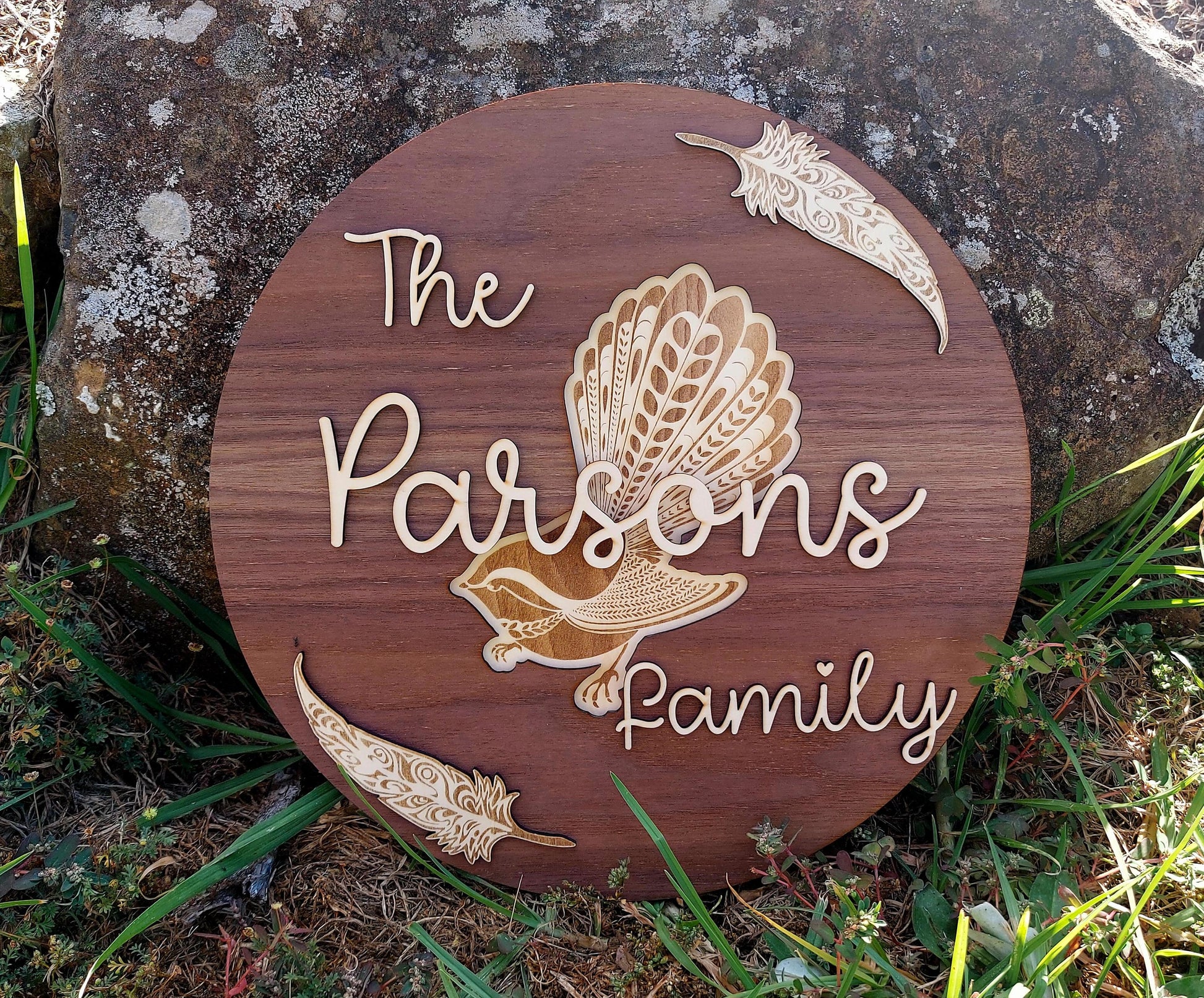 Our 3 Layered Personalised Wooden Family / Whanua signs are made using Walnut Ply, and Basswood to give this lovely 2 tone, 3D effect.